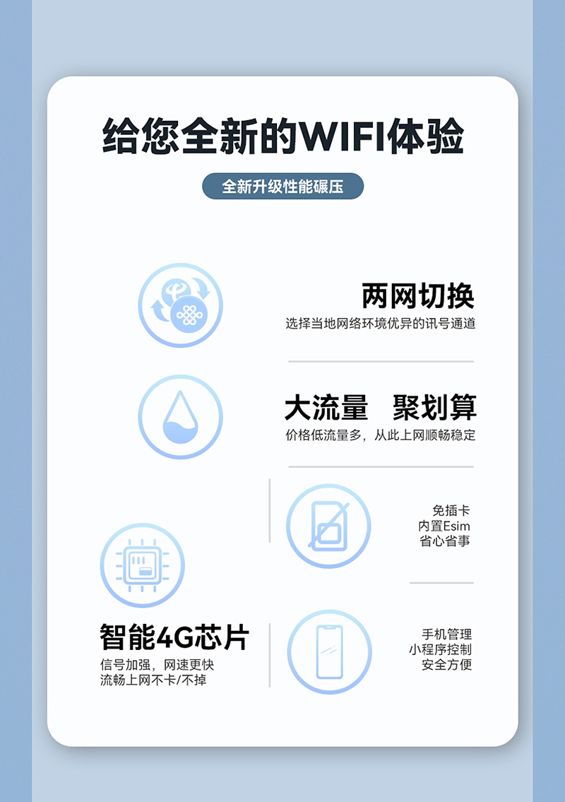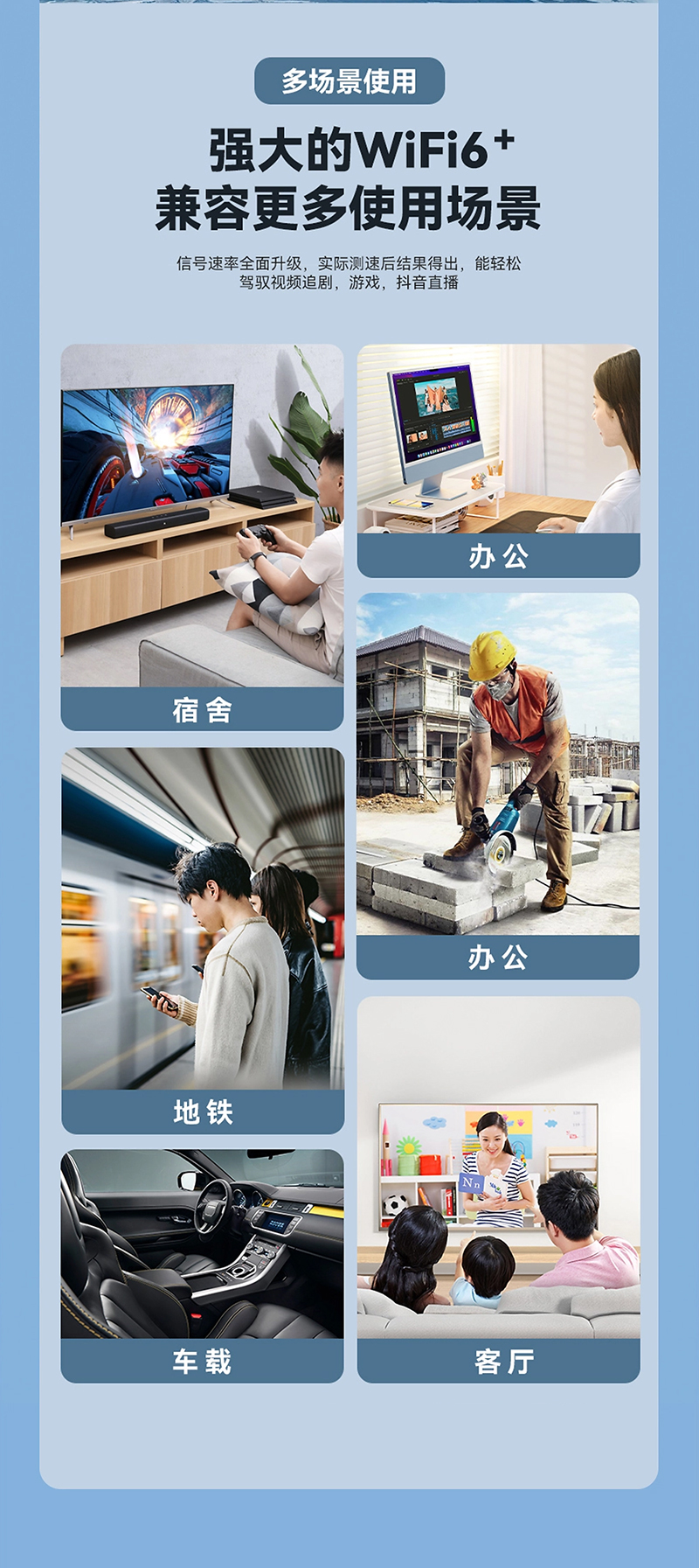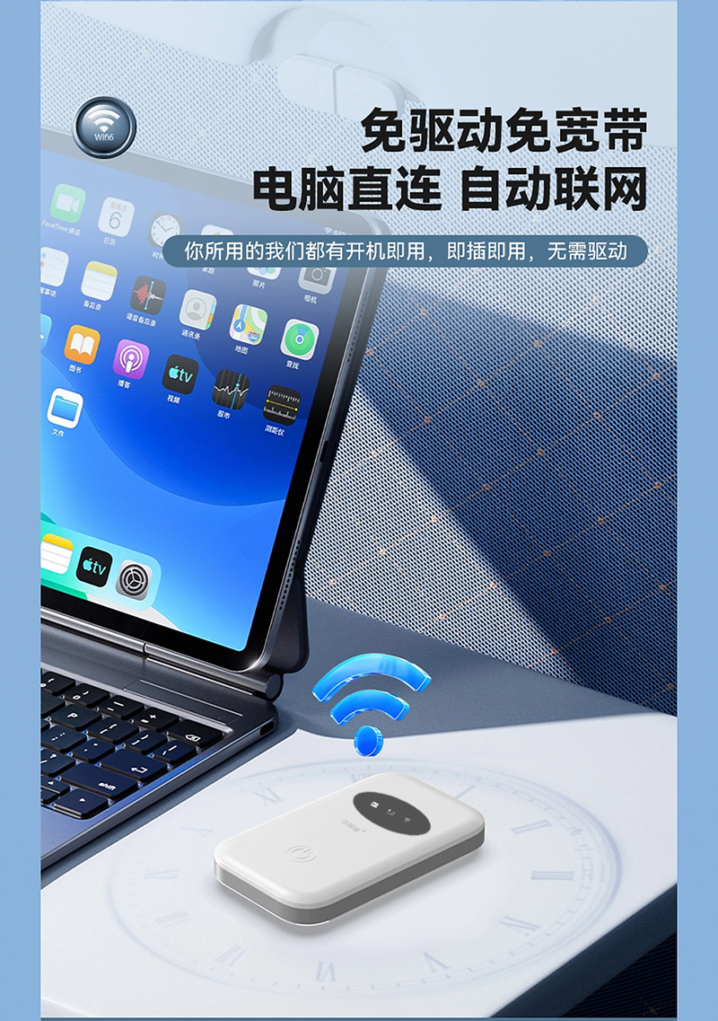 全新面貌/小巧精致WiFi6高速上网/网速可达8-30m/超轻薄mini;独享高速WiFi,游戏组团开黑不断网,办公多人不卡顿;信号稳定低延迟 游戏加速火力全开;超距信号无障碍传输;智能芯片防蹭网,防破解防万能钥匙;免驱动免宽带,电脑直连自动联网;